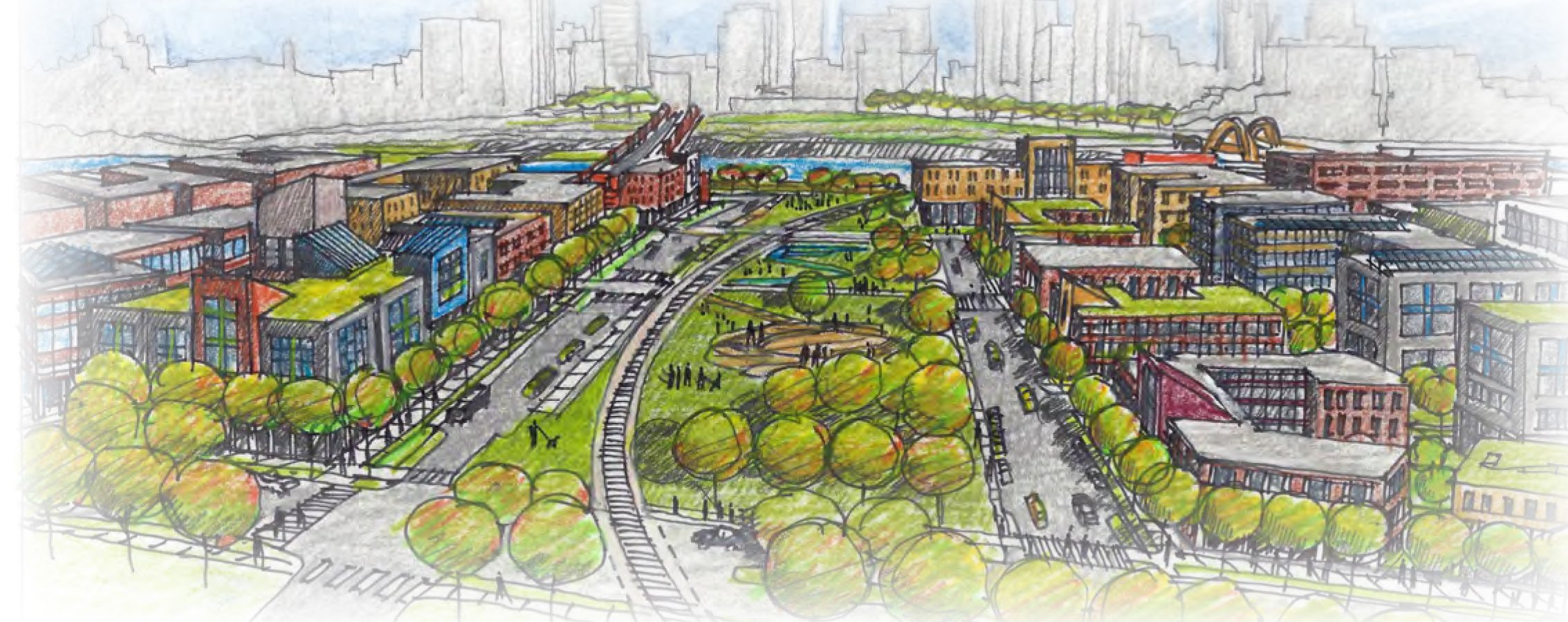 Artistic rendering of West Side Flats Greenway Project